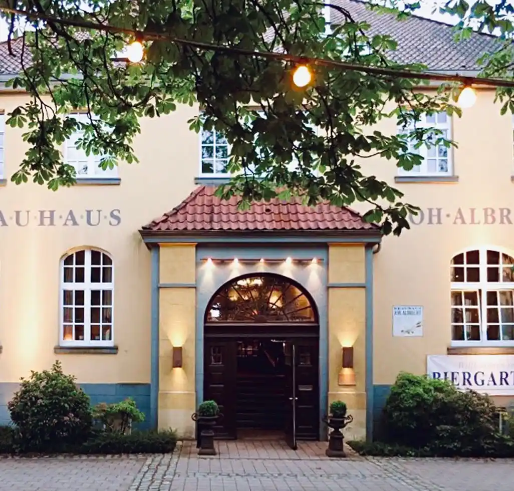 Brauhaus Joh. Albrecht ist ein beliebtes traditionelles Brauhaus mit regionaler westfälischer Küche und selbstgebrautem Bier. Das Haus überzeugt durch seine besondere Atmosphäre, die an die Geschichte und Tradition Bielefelds erinnert. Die hochwertige Ausstattung des Hauses sorgt für Komfort, während der einfache Zugang für alle Gäste einen angenehmen Aufenthalt garantiert. Es besticht durch gemütliches Ambiente und rustikalen Charme.
